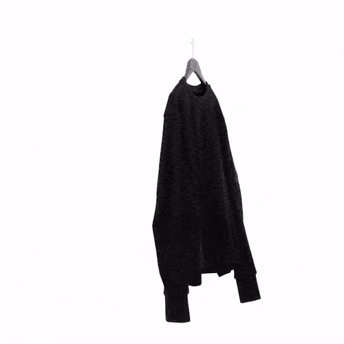 Thick cotton-blend sweatshirt with curved sleeves providing unique gathered fit. The body is made of 4 panels, additional seams act as an extra detail on the sides. Side panels and crewneck collar in same ribbed cotton. Thumbholes at cuffs. Unique item.